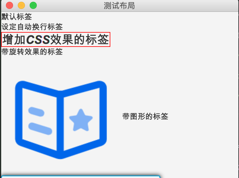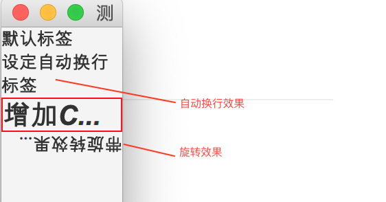 Label用于展示文本元素,可设定效果,或添加图形元素。Mac OS下效果如下: