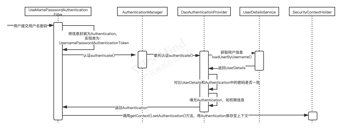 当SpringSecurity初始化时会创建一个名为SpringSecurityFilterChain的Servlet过滤器链(由很多过滤器组成),类型为org.springframework.security.web.FilterChainProxy这里有很多个实现了javax.servlet.Filter接口的过滤器,所有外部请求都会通过这个类链进行过滤。这些过滤器会调用AuthenticationManager类进行认证,调用AccessDecisionManager类校验用户权限。具体流程如下